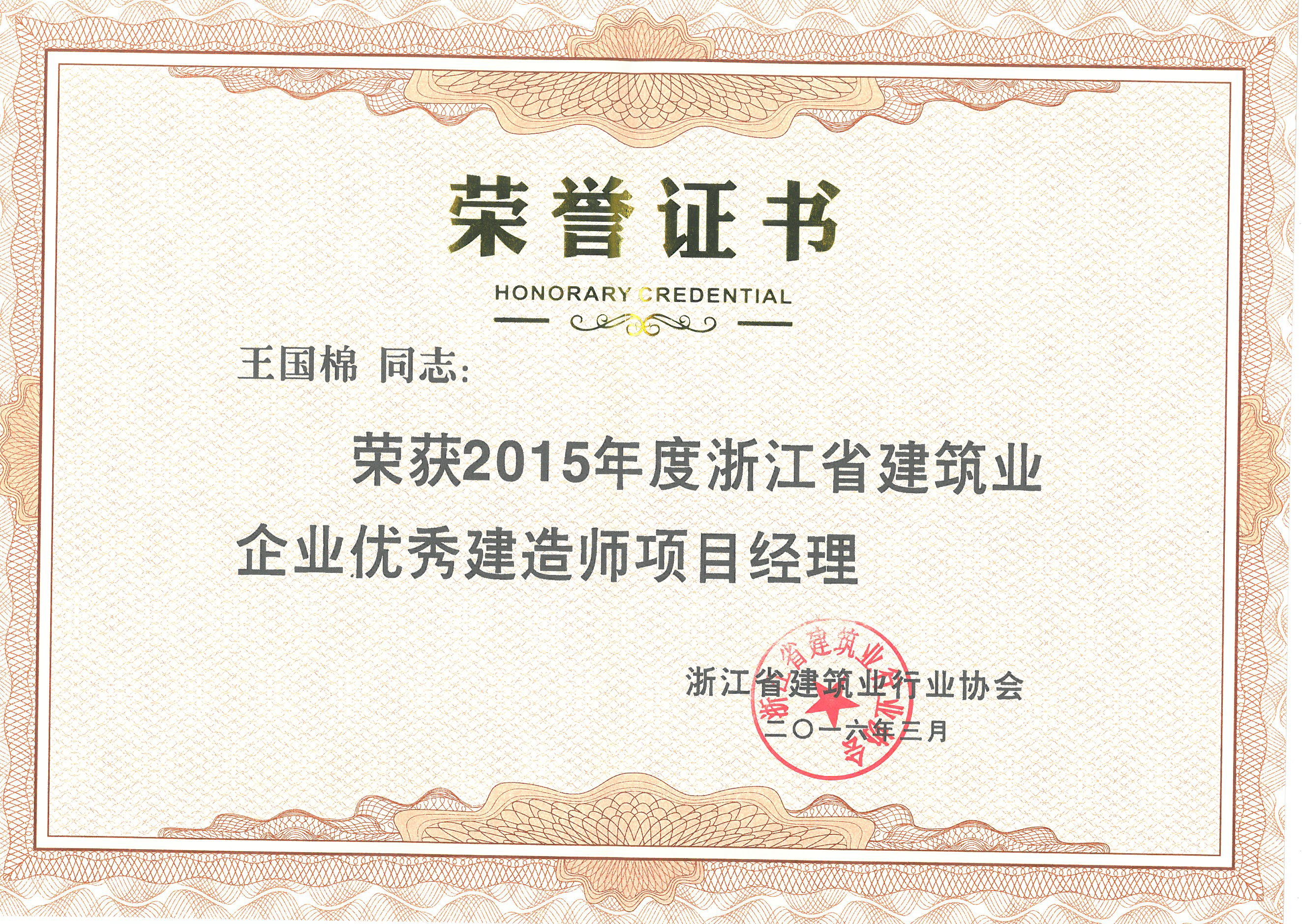 大會對2015年度的先進協會、先進建筑業企業和優秀建造師項目經理進行了隆重的頒獎儀式。我集團公司評為2015年度“浙江省先進建筑業企業”,集團副總經理王國棉被評為2015年度 “浙江省建筑業企業優秀建造師項目經理”。