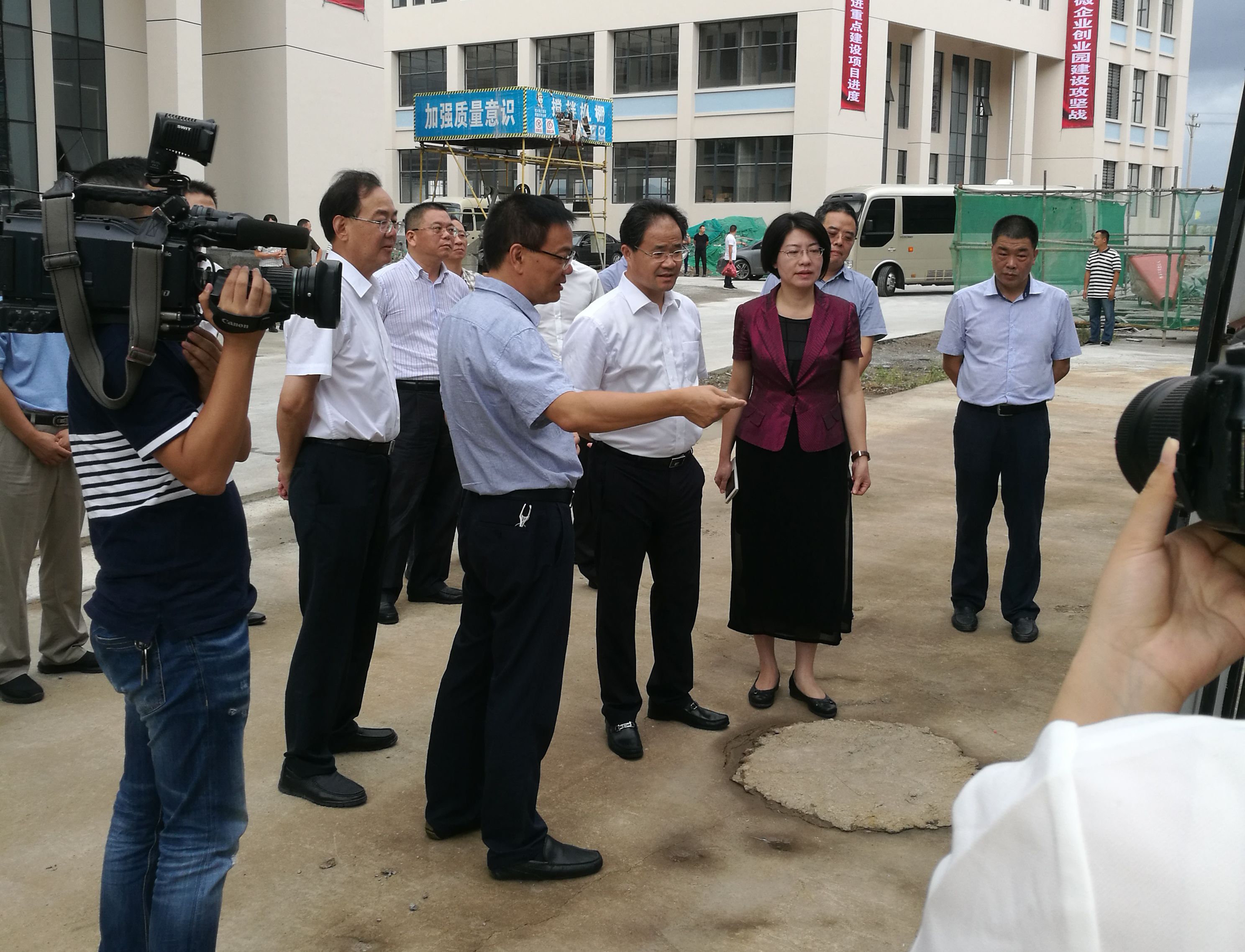 9月27日下午,臺州市委書記王昌榮和臺州市委常委、秘書長單堅在仙居縣委副書記、縣長林虹及縣委常委、經(jīng)濟開發(fā)區(qū)管委會黨組書記鄭旭東的陪同下,來到大經(jīng)集團承建的仙居縣經(jīng)濟開發(fā)區(qū)永安工業(yè)集聚區(qū)標(biāo)準(zhǔn)廠房項目工地考察調(diào)研,集團副總經(jīng)理黃愛平陪同。